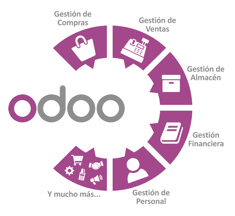 No es necesario software adicional de gestión de almacenes, ventas o software de contabilidad. Todo está integrado en Odoo.